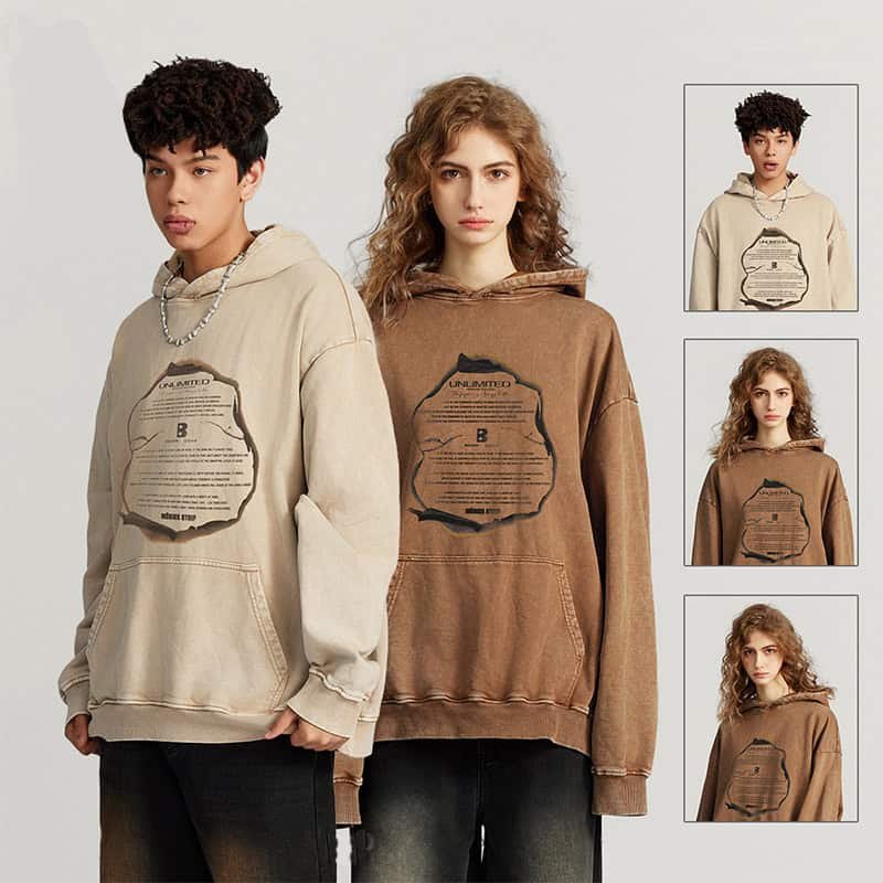 High Quality Vintage Acid Wash Cotton Casual Loose Hoodies