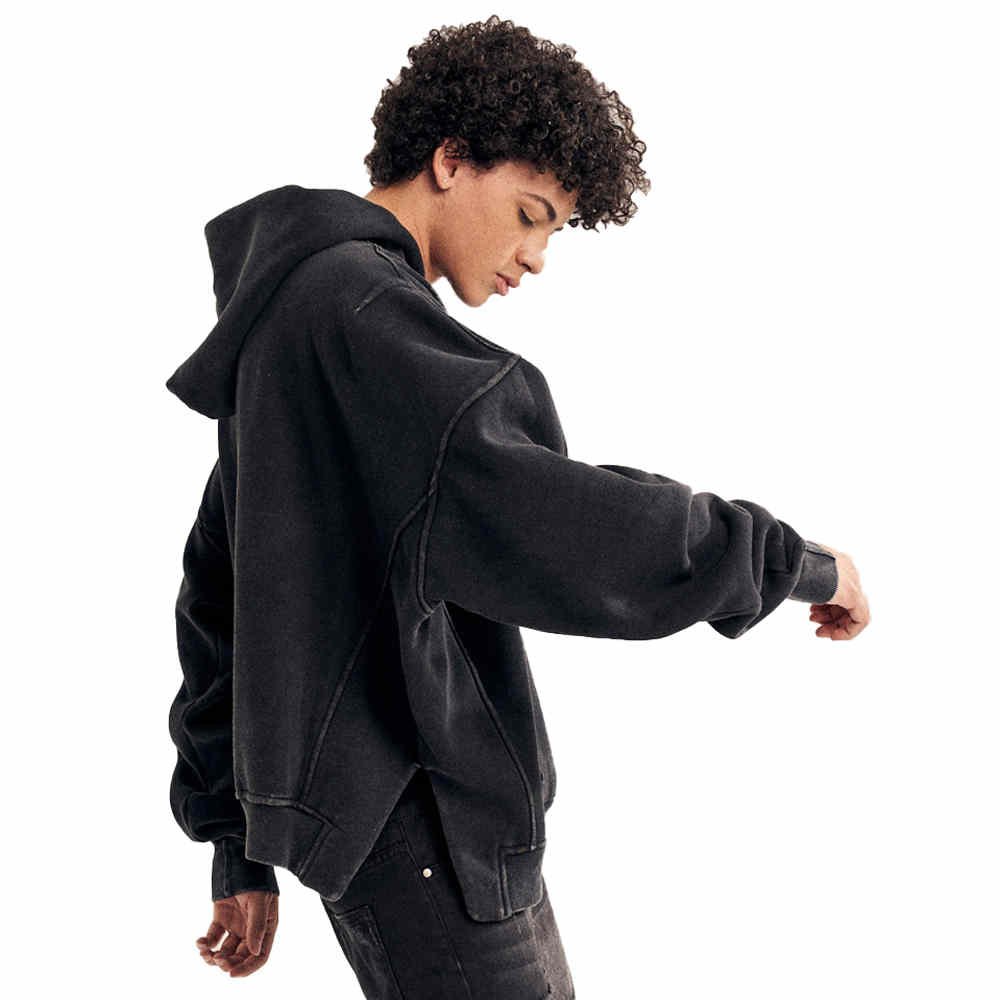 Men’s Acid Washed Solid Seam Split Hoodie