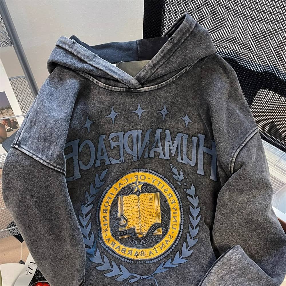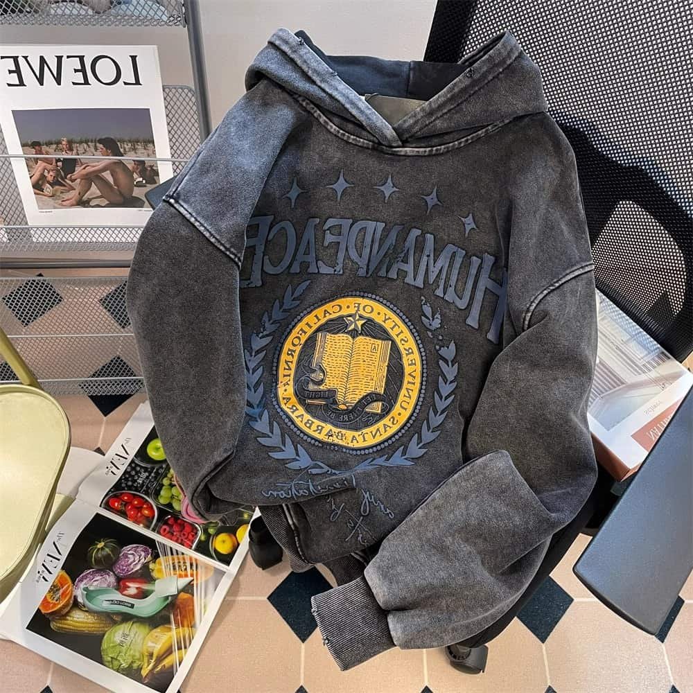 Custom washed to make old printed hoodie